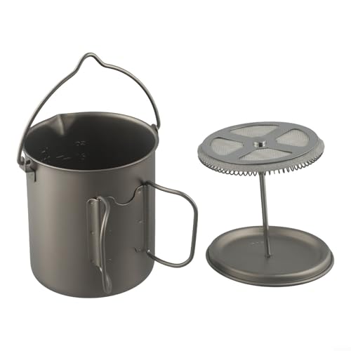 ZWEquipint camping kaffepress, 750 ml titan bärbar presskanna, utomhus vandring handbryggd kaffebryggare, vikbart handtag picknick tebryggare