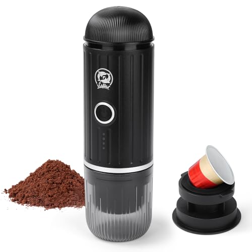 Bärbar espressomaskin, 4-6 min självuppvärmande, 3-i-1 bärbar kaffebryggare, 50 laddning, kapslar, stora små tider för en
