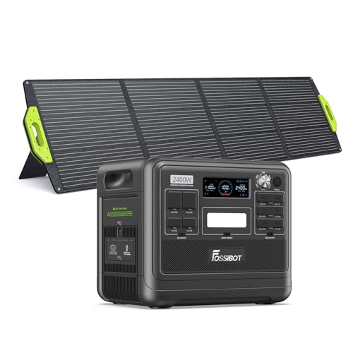 FOSSiBOT F2400 bärbar kraftstation, 200 W solpanel 200 W, 2048 W LiFePO4-batteri, 80 % belastning på 1,5 timmar, 2 400 W AC-utgång (4 800 W topp) Bärbar solgenerator för camping och resor.