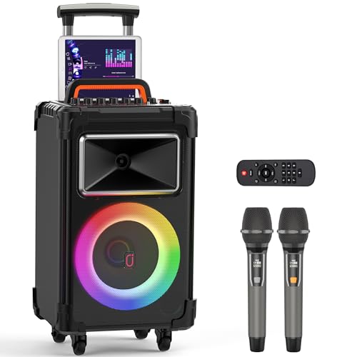 Karaoke Machine LSMOEO Karaoke maskin för vuxna och barn med 2 trådlösa UHF-mikrofoner, bärbar Bluetooth-högtalare, PA-högtalarsystem med LED-festljus för hemmafest