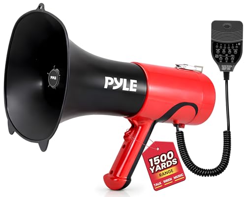 Pyle Bärbar Bullhorn Megafon - Bluetooth-kompatibel PA Högtalare med Inbyggd Röstmixer, Räckvidd på 1500 Yard, Siren, Justerbart Volymkontroll100W, Högtalare för Utomhussporter och Säkerhetsövningar