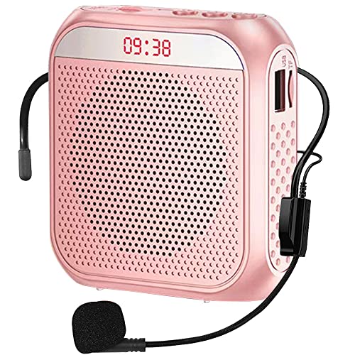 Bärbar röstförstärkare för lärare, 2 200 mAh uppladdningsbar personlig förstärkare mikrofon PA-system headset mikrofon med högtalare för lärare, utbildning, möte, reseguide, yoga, klassrum (rosa)