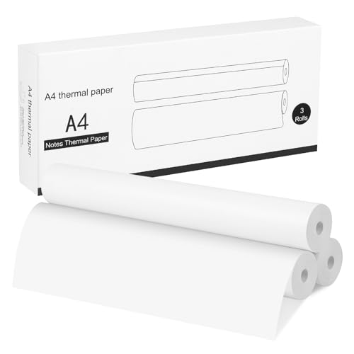 GuKKK A4 Termopapper för Bärbar Skrivare - 3 Rullar Snabbtorkande Skrivarpapper, 210 x 297 mm, Super White, Hög Okapacitet (ca 50 Ark)