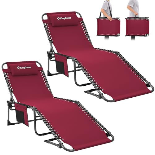 Kingcamp Solstol Med 5-Stegs Justerbart Ryggstöd för Trädgårdsfåtölj Bärbar Solstol för Strand, Terrass, Pool, Camping, Gästsäng, Inomhusbruk
