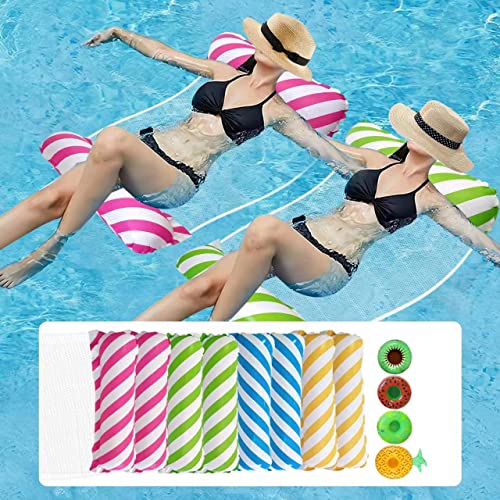 Weeupolfun Uppblåsbar vattenhängmatta, 4-pack pool flytmatta för vuxna, multifunktionell simbassänghängmatta med mugghållare, bärbar flytande stol för pool, strand, utomhus