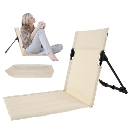 KTCINA Golvstol med ryggstöd lätt bärbar golvstol utomhus bottenfärg hållbar bekväm strandstol vikbar för semester, trädgård, camping, park, festivaler (beige)