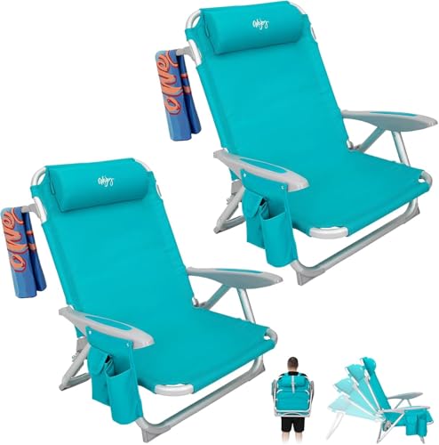 #WEJOY 4-positioners justerbar strandstol för vuxna, set med 2, hopfällbar låg strandstol, lätt och bärbar, hög ryggkudde, ficka, för användning utomhus