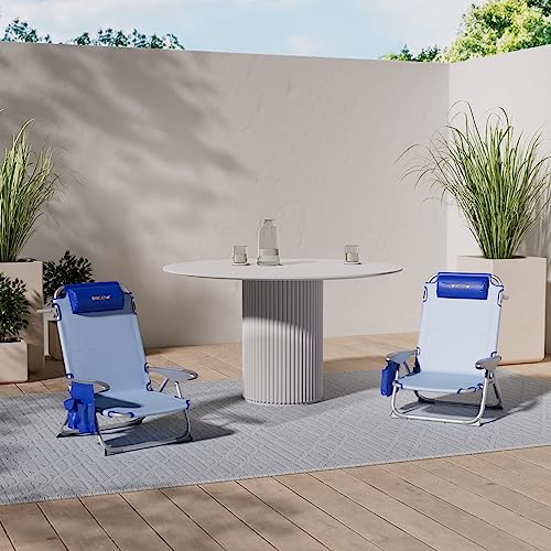 GOPLUS Strandstol, 2-pack campingstol och bordsset med ryggstöd, justerbar i 5 nivåer, nackstöd och armstöd, fällstol, vikstol, lätt bärbar med axelremmar för strand (marin)