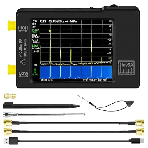 AURSINC 4'Tinysa Ultra spektrumanalysator med 25 W dimmer, 100 kHz - 5,3 GHz, V0.4.5.1 bärbar frekvensanalysator med microSD 32 GB, 2-i-1 RF-signalgenerator 100 kHz vid 800 MHz MF/HF/VHF.