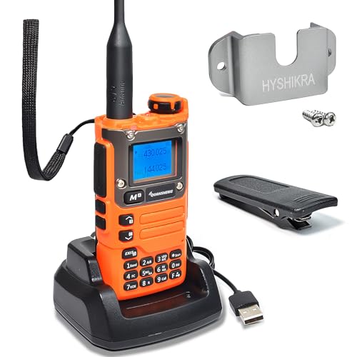 Quansheng UV-K5 (8) VHF UHF bärbar walkie talkie FM NOAA UV-K6 tvåvägsradio för utomhus/lager och logistik/navigering/industriell produktion (Orange, med radiohållare)