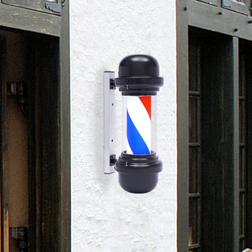 KenSyuInt Barber Pole LED-lampa frisörsalong roterande professionell frisörsalong frisör LED ljus roterande ljus vägglampa utomhusvägglampor röd & blå & vit