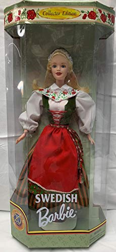 Barbie Year 1999 Collector Edition Dolls of the World 20th Anniversary 12 Inch Doll - Swedish Barbie in One Piece Dress with Attached Apron and Vest Plus Shawl, Hat, Knee Socks, Shoes and Doll Stand
