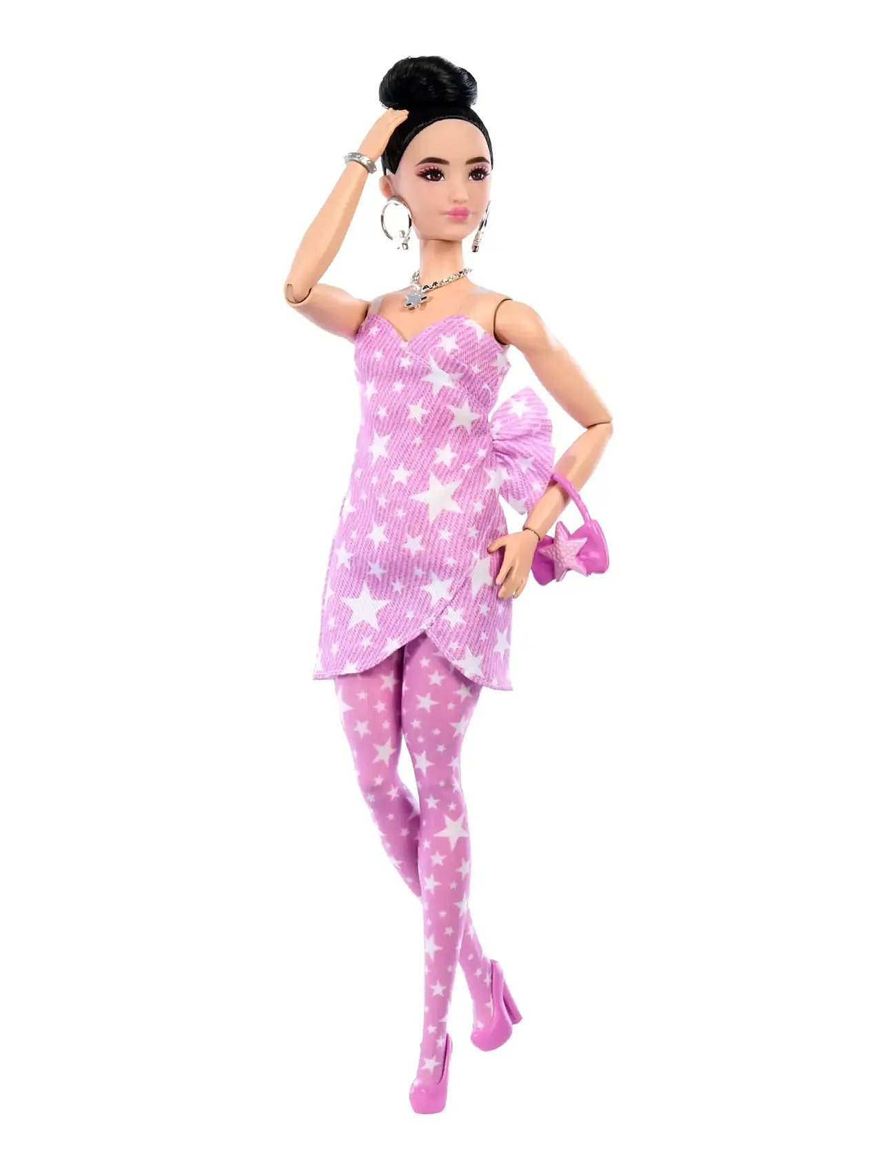 Barbie Deluxe Style Fashion Doll #11 In Pink Denim Star-Print Dress, Black Hair In Bun - Pink - ONE SIZE