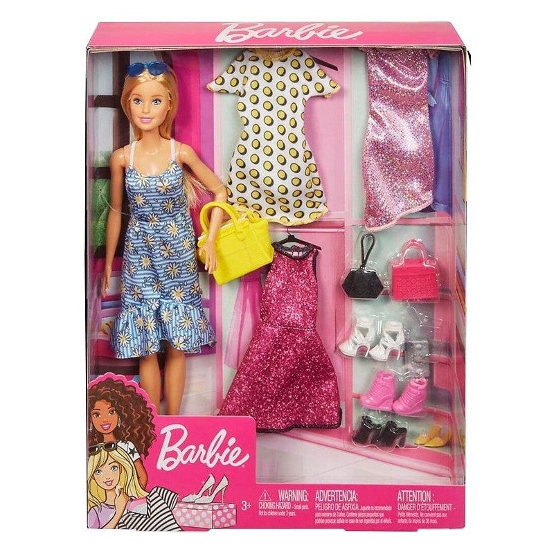 Barbie Fashionistas Docka + STOR Garderob med 25 tillbehör, 60x30 cm