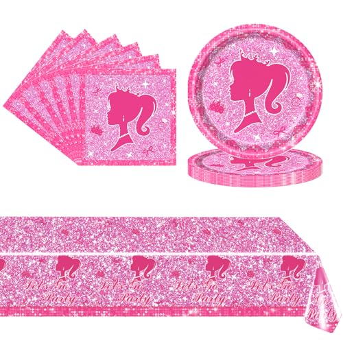 POPOYU 37 st het rosa flickor fest papper servisset, prinsessfest tallrikar servetter servetter, flickor. Prinsessa födelsedag bordsdekorationer för barn flickor barbie prinsessa Let's Go