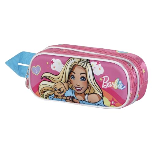 Karactermania Barbie Rainbow-3D dubbel pennfodral, rosa, 22 x 9,5 cm, Rosa, En storlek, 3D dubbelt pennfodral regnbåge