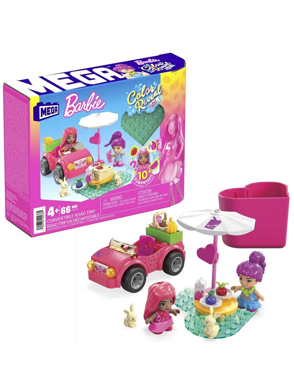 MEGA Barbie Colour Reveal Convertible Road Trip Building Toy Car With 2 Dolls