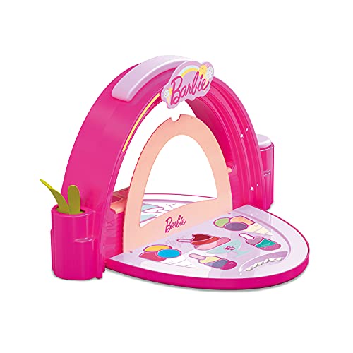 Mondo Barbie glassbutik, 40005, smink/glassbutik, inkluderar 8 glänsande läppar, 4 kompakta ögonskuggor, 12 kompakta ögonskuggor, ögonskuggor, applikatorer, 5 nagelfilar, spegel och LED-ljus