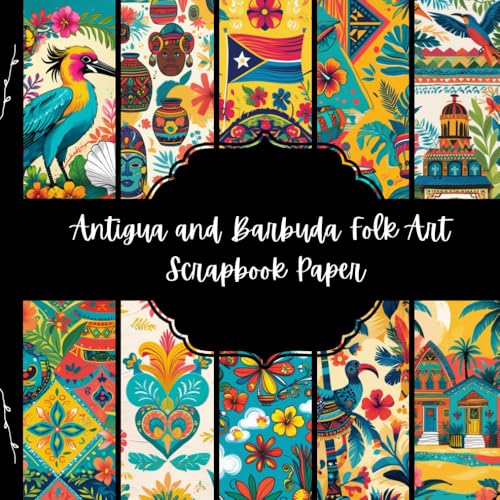 Antigua and Barbuda Folk Art Scrapbook Paper, North America Junk Journal Paper, Travel Decorative Paper, DIY Projects, Origami, Collage Sheets, Decoupage Paper, 10 Designs, Double Sided