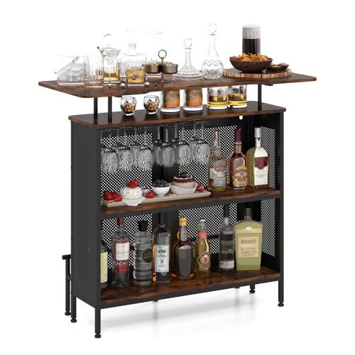 COSTWAY barbord kök, köksbänk med lagringsutrymme och fotstöd, bardisk med metallram, justerbara fötter, 110,5 x 48 x 112,5 cm, vintagebrun