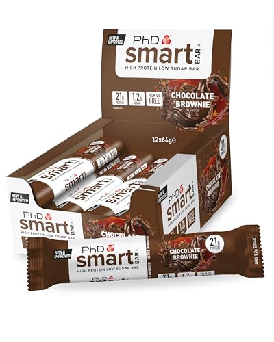 PhD Nutrition Smart Bar Protein Bar 12 x 64 g choklad Brownie – High Protein Snack med 20 g protein och lite socker, makrovänlig proteinstång
