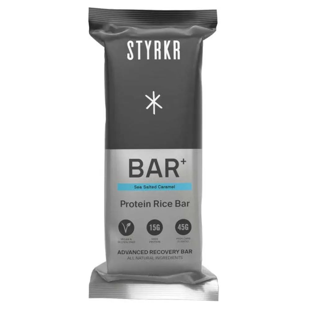 Styrkr Bar Plus Protein Bars Box Salted Caramel 12 Units Svart