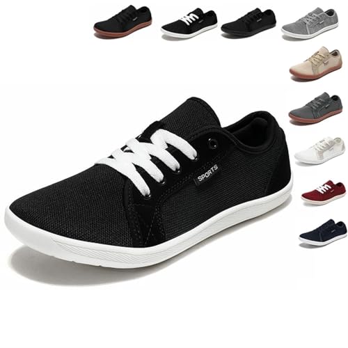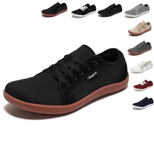 Geweo Barfotaskor Herr Dam Sommar Barefoot Shoes med Bred Tåbox Andas Halkfria Terrängskor Gymnastikskor Lätta Bekväma Zero-Drop Sulor Löparskor Fitness Sneakers Unisex Svart 47EU