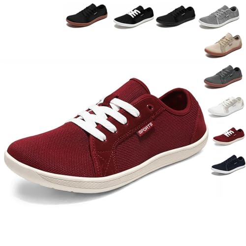 Wide Barefoot Shoes Mens Womens, Unisex Wide Barefoot Shoes for Men Women, Outdoor Trail Running Minimalist Walking Shoes(Wine red,37 EU)
