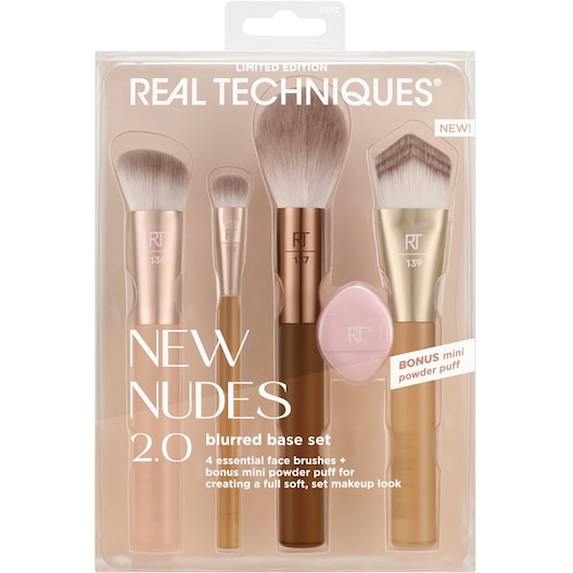 Real-Techniques Makeup-Brushes Brush-SetsNew Nudes 2.0 Blurred Base Set 136 Soft Sculpting Brush + 138 Expert Concealer Brush + 137 Tapered Blush Brush + 139 Prism Pro Foundation Brush + Mini Miracle Powder Puff 1 Stk. (296,00 kr / 1 Stycke)