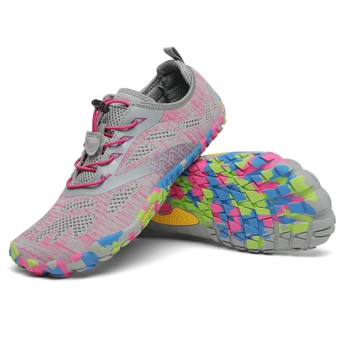 Saguaro Barfotaskor trailskor, badskor herr/dam, Snabbtorkande utomhusskor, Stickad grå, 42 EU
