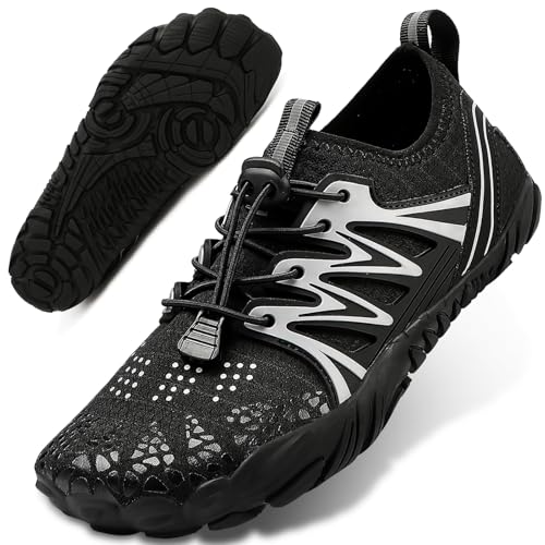 OFFCUP Herrskor, barfotaskor, barfota minimalistiska utomhusvandringsskor halkfria lätta och andningsbara löpning fitness breda fötter noll droppskor, svart, 45 EU Bred