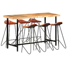 vidaXL Bargrupp 7 delar massivt sheshamträ och äkta läder 278766