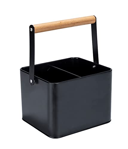 Wenko Redskap korg Baco, svart utomhus kökstillbehör, robust bärkorg av pulverlackerad svart metall med flexibelt trähandtag, perfekt för transport av såser, 18 x 25,5 x 15 cm