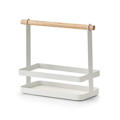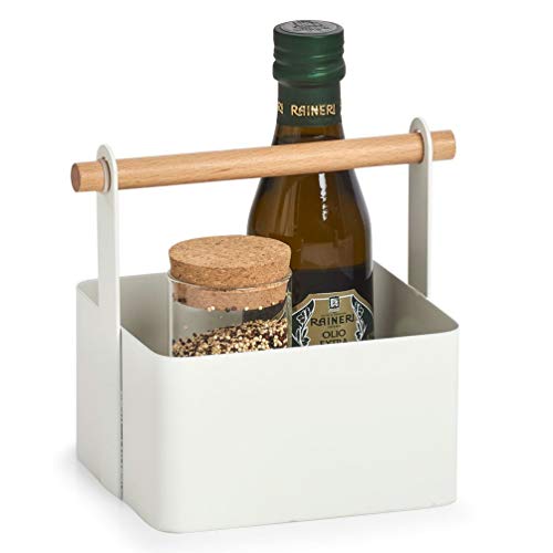 Zeller 27397 Menage, Metall/Bamboo Vit Ca. 23,5 x 10 x 20 cm Snygg ram för kryddor, vinäger och olja, Bärkorg för vinäger och olja, Metallkorg