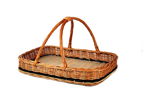 MyBer® Bricka, serveringsbricka, korg av pil för frukt, bröd, bakverk, pilbricka, bärkorg, bärbricka, B/T/H 45/30/8 cm (23 cm med handtag) brunt handarbete K2-136