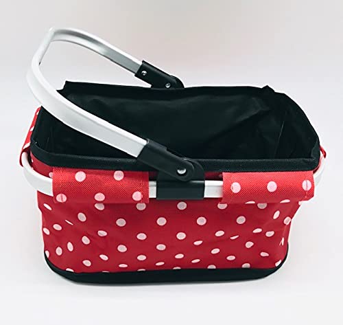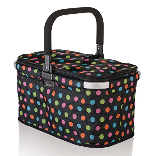 Genius Shoppingkorg Falko Premium svart med färgglada prickar | kundkorg 22 l stor, vikbar, med lock | bärkorg med aluminiumhandtag för resor