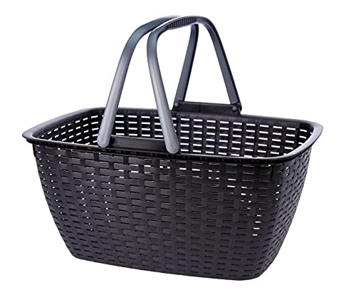 HRB Shoppingkorg i rottinglook, stor bärkorg med handtag, 18 liter volym, shoppingväska, korg (antracit)