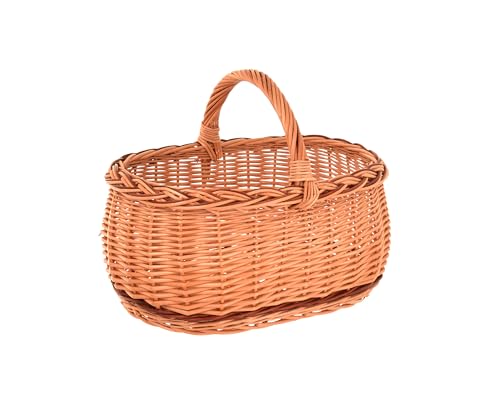 KADAX flätad korg för svampar, oval korg för shopping, robust picknickkorg med handtaget, flaskkorg, korg för trädgården, bärkorg (vit, 36 x 28 x 27 cm)