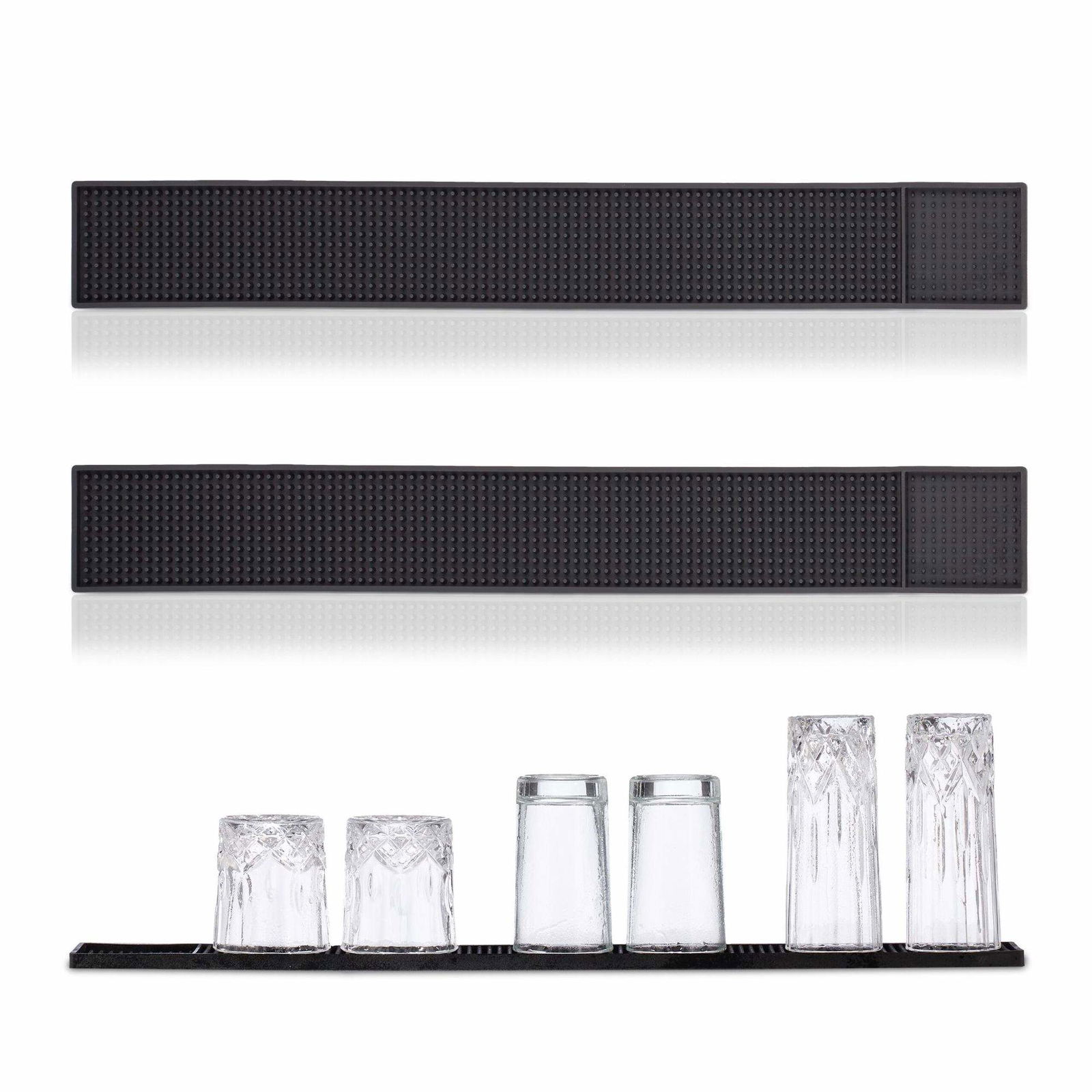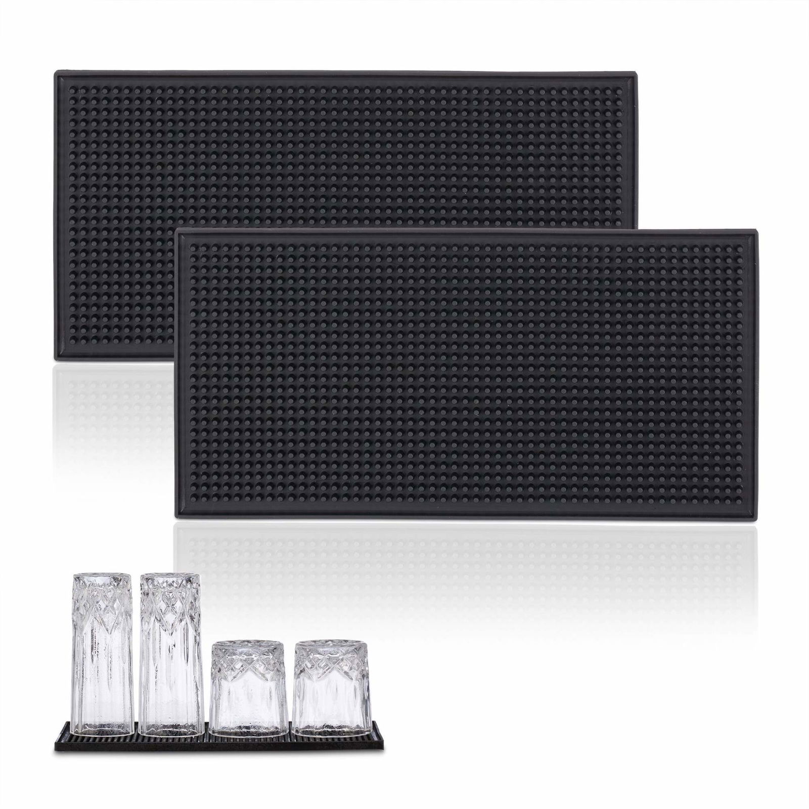 Foree 2 stycken barservicematta, gummi överflödesmatta, barmatta, lämplig för barer eller hemmabruk, för stoppning av vinglas (svart)