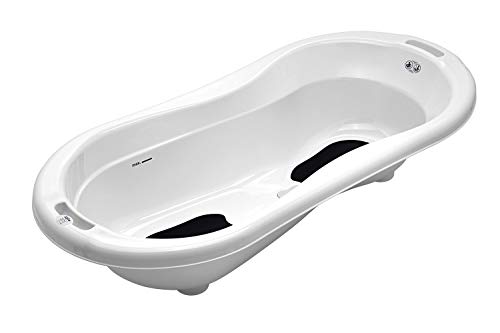 Rotho Babydesign TOP Xtra Stort badkar, med 2 halksäkra mattor och dräneringshål, idealisk för 2 barn, 0-36 månader, TOP Xtra, vit, 205000001