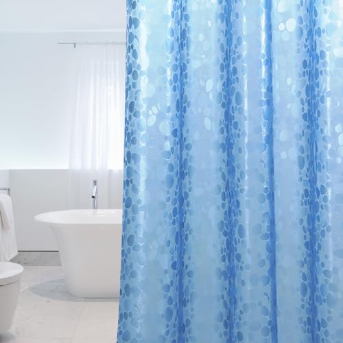 Weltrxe Duschdraperi, mögelresistent med vikter nertill, 0,2 mm [183 x 183 cm], vattentätt antibakteriellt EVA-draperi för dusch och badkar, 3D-stenmönster, blått, inkl. 12 duschdraperiringar, för barn