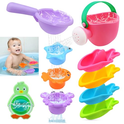LinStyle badleksak baby från 1 år badleksak från 1 2 3 4 år, 10 stycken mögelfria vattenleksaker barn, badkar leksaker barn, gåva för pojkar flickor födelsedag