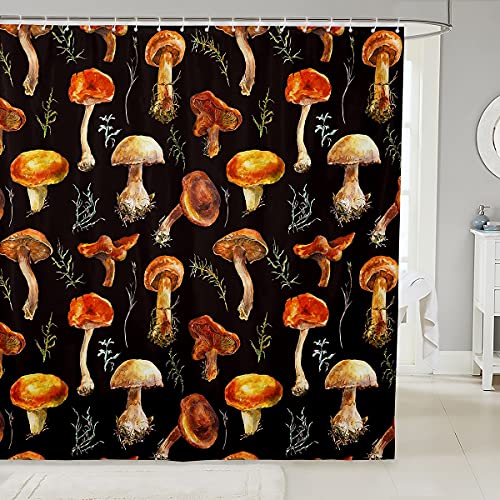 Svamp duschdraperi tecknad svamp löv botaniskt badrum duschdraperi set för badkar barn kvinnor höst naturliga växter bad draperi vild svamp tyg bad draperi 183 x 183 cm