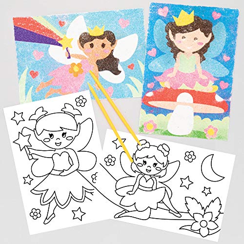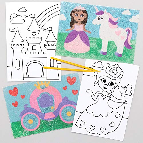 Baker Ross AX124 Sandkonstbilder med prinsessmotiv, självhäftande fördesignade bilder för barn, glitterkonst (8 stycken), medium