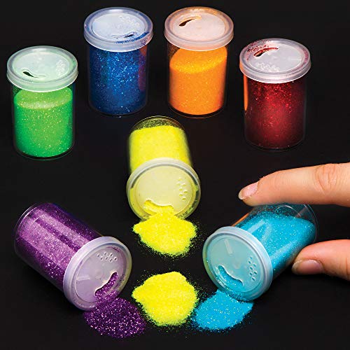 Baker Ross AT704 Glitterströare i regnbågsfärger, förpackning med 7 x 15 g, för barn för att anpassa kort, dekorationer och bilder, för hemmaprojekt, skolprojekt