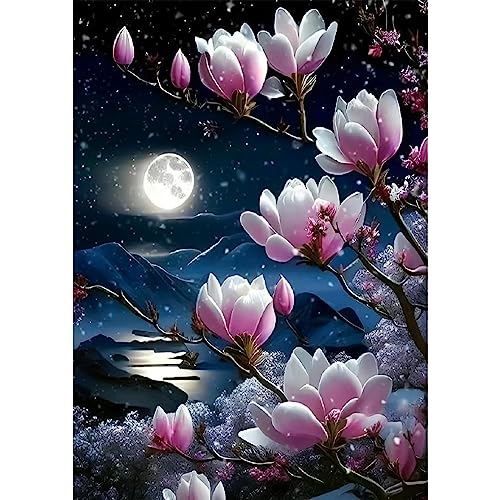 MXJSUA Magnolia diamantmålning, 5D diamantmålningssats, bilder för vuxna, måne, gör-det-själv diamantmålning, diamantmålning för barn, bilder i set 30 x 40 cm för väggdekoration