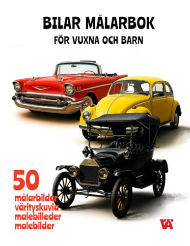 Bilar Målarbok för Vuxna och Barn: 50 Fantastiska Bilder av Klassiska och Moderna Bilar med Svarta Sidor emellan för Enkel Färgläggning