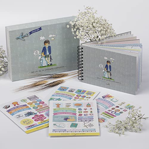 Album Bilder Nattvardsgång Barn | HappyMots | 22cm x 15cm | Community Signaturbok | Levereras med Fodral | Album Bilder att klistra in och skriva | Dekorativa Klistermärken Set ingår.