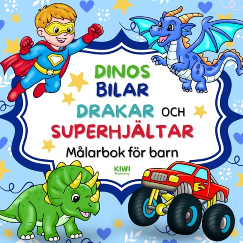 Målarbok dinos, fordon, drakar & superhjältar: 40 bilder att färglägga för barn 4-8 år