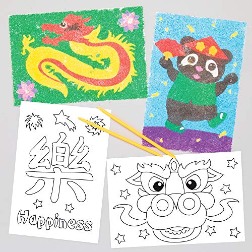 Baker Ross kinesisk nyårsfest sandkonst bilder pysselset för barn (8 stycken) kreativt set för pyssel, dekoration och present till nyår.